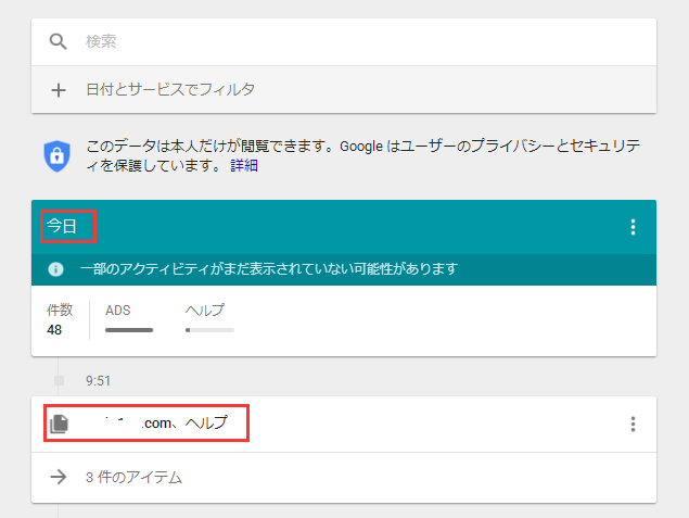 ステップ2.Googleアカウントでアクセスした全ての関連サイトが一覧で表示されます。日別ごとに探せますので、そのリストの中から再度閲覧したいリンクをクリックすれば復元できます。